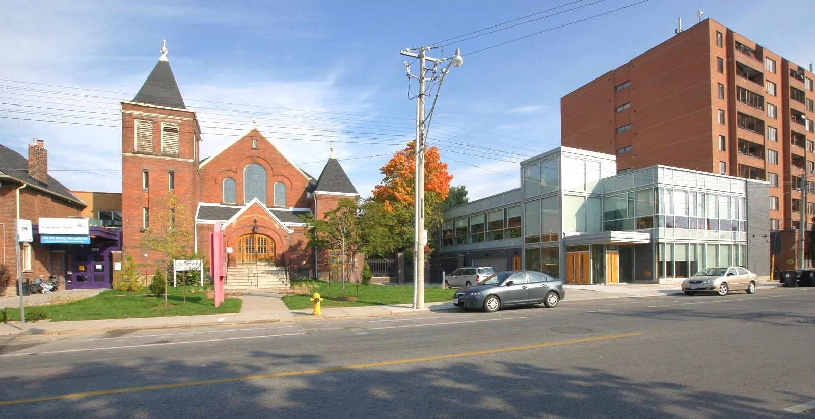 The project was challenging in that the existing buildings and lands are historically designated. The design compliments the existing church, infills and intensifies the parking lot, contributes to the urban landscape creates a “campus of care" and fulfills the requirements for a modern and engaging community health centre.