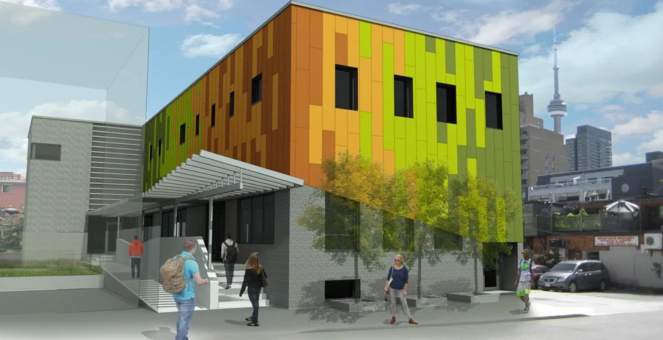 The 11,400 sq. ft. centre offers supportive programs and services for at-risk street-engaged youth through a drop-in centre, medical and counselling services, and employment programs. The project also integrates a 38 bed emergency shelter, YMCA House, on a tight urban site in downtown Toronto.