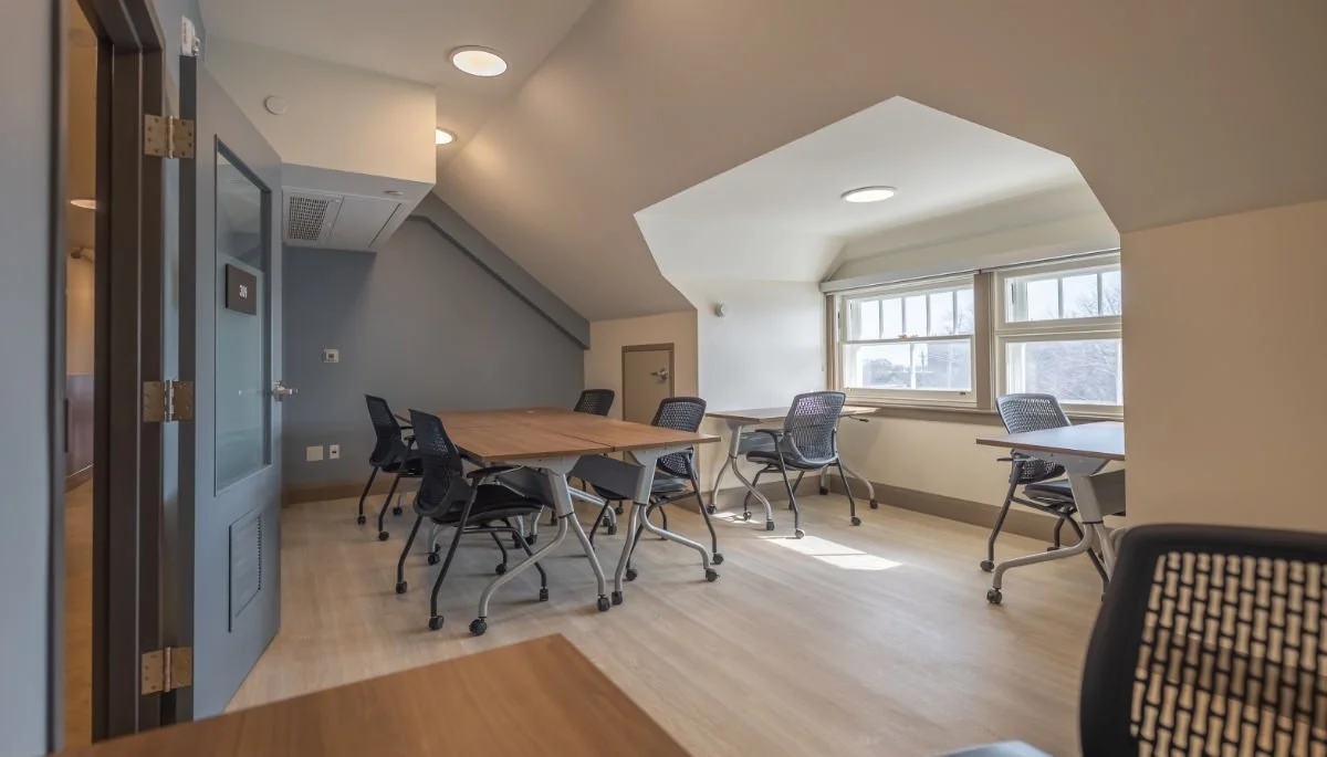 The shelter contains a full commercial kitchen as well as additional resident kitchens. The shelter provides extensive support for current and past residents, with a separate street entrance for former residents to provide privacy for those currently living in the shelter. For current residents, separate program spaces are provided for school age children and children & youth, together with a homework/computer room.